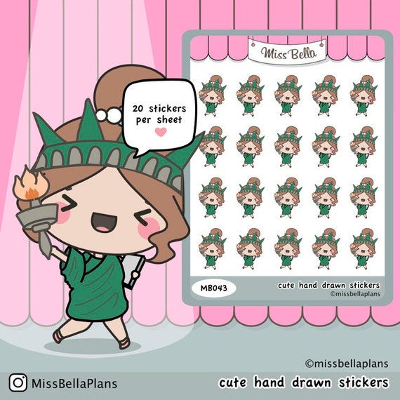 Decorate with this Cute Bella Girl Independence Day Planner Stickers your Live Planner, Erin Condren, Happy Planner, Filofax or Kikki K. with our unique designed functional Stickers. Cute Planner Accessories that will transform your daily planner from ordinary to extraordinary! These kawaii stickers are a perfect way to put a personal twist to your professional planner. Stay organized while staying colorful and stylish!