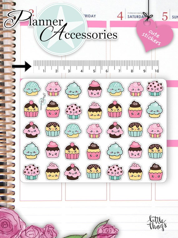 Decorate with this Cute Icon Kawaii Planner Stickers your Live Planner, Erin Condren, Happy Planner, Filofax or Kikki K. with our unique designed functional Stickers. Cute Planner Accessories that will transform your daily planner from ordinary to extraordinary! These kawaii stickers are a perfect way to put a personal twist to your professional planner. Stay organized while staying colorful and stylish!Kawaii Cupcake Planner Stickers