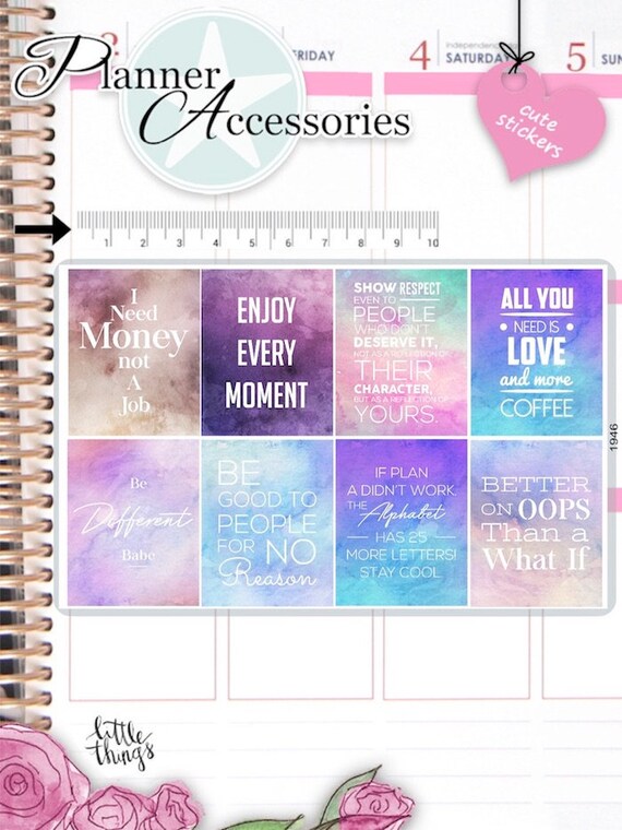 Decorate with this Motivational Quote Planner Stickers your Live Planner, Erin Condren, Happy Planner, Filofax, Kikki K or whatever planner you love. Cute Decorative Stickers transform your daily planner from ordinary to extraordinary! These functional stickers are a perfect way to put a personal twist to your professional planner. Stay organized while staying colorful and stylish!