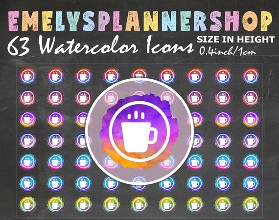 from Etsy Shop for EmelysPlannerShop https://www.etsy.com/listing/724476415/63-watercolor-icons-coffee-stickers?ref=rss