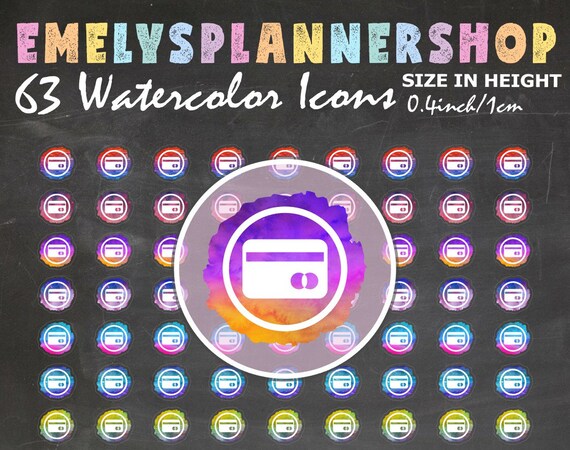 from Etsy Shop for EmelysPlannerShop https://www.etsy.com/listing/710783074/63-watercolor-icons-credit-card-stickers?ref=rss
