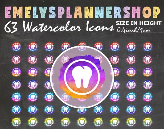 from Etsy Shop for EmelysPlannerShop https://www.etsy.com/listing/710782092/63-watercolor-icons-dentist-stickers?ref=rss