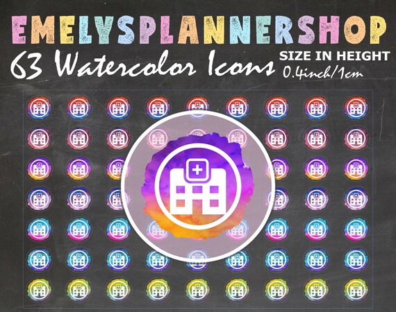 from Etsy Shop for EmelysPlannerShop https://www.etsy.com/listing/710618050/63-watercolor-icons-hospital-stickers?ref=rss