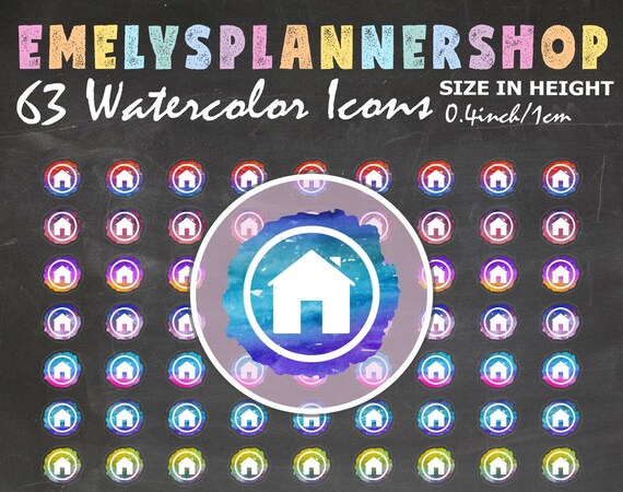 from Etsy Shop for EmelysPlannerShop https://www.etsy.com/listing/725393665/63-watercolor-icons-house-stickers?ref=rss