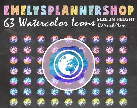 from Etsy Shop for EmelysPlannerShop https://www.etsy.com/listing/711533442/63-watercolor-icons-planet-earth-sticker?ref=rss
