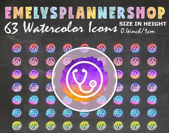 from Etsy Shop for EmelysPlannerShop https://www.etsy.com/listing/724644265/63-watercolor-icons-stethoscope-stickers?ref=rss