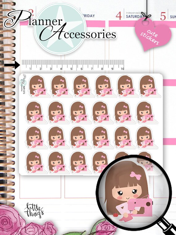 Decorate with this Cute Emely Girl Sewing Planner Stickers your Live Planner, Erin Condren, Happy Planner, Filofax or Kikki K. with our unique designed functional Stickers. Cute Planner Accessories that will transform your daily planner from ordinary to extraordinary! These kawaii stickers are a perfect way to put a personal twist to your professional planner. Stay organized while staying colorful and stylish!