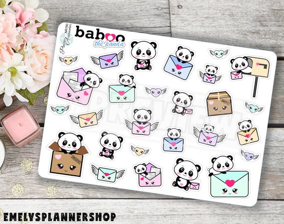 Decorate with this cute hand drawn Kawaii Planner Stickers your Live Planner, Erin Condren, Happy Planner, Filofax or Kikki K. with our unique designed functional Stickers. Cute Planner Accessories that will transform your daily planner from ordinary to extraordinary! These kawaii stickers are a perfect way to put a personal twist to your professional planner. Stay organized while staying colorful and stylish!Kawaii Happy Mail Stickers Cute Baboo Panda Stickers