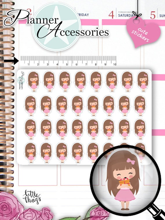 Girl Birthday Planner Stickers - Kawaii Stationary - Hobonichi Sticker - Bujo Sticker - Character Sticker for your Bullet Journal 1371 by EmelysPlannerShop