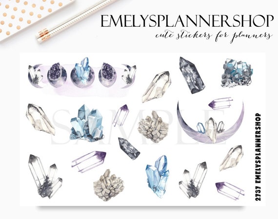 Planner Stickers Moon and Crystals - Watercolor Stickers - Bujo Sticker Set 2737 by EmelysPlannerShop