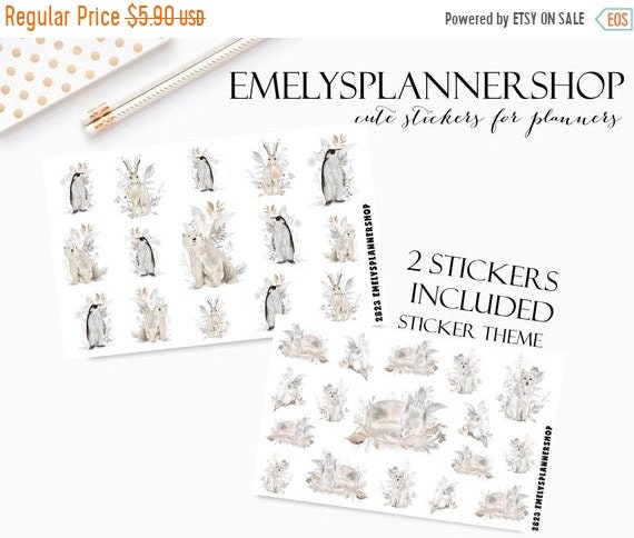 BLACK FRIDAY SALE Winter Arctic, Fox and Wolf, Cosmic Animals, Winter Woodland, Bullet Journal Kit, Planner Sticker Set, Decorative Sticker, by EmelysPlannerShop