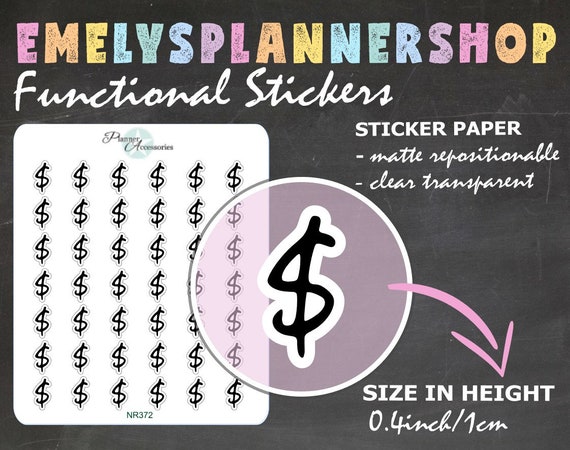 Clear Dollar Stickers Money Stickers Dollar Sign Stickers Planner Stickers Erin Condren Functional Stickers Decorative Stickers NR372 by EmelysPlannerShop