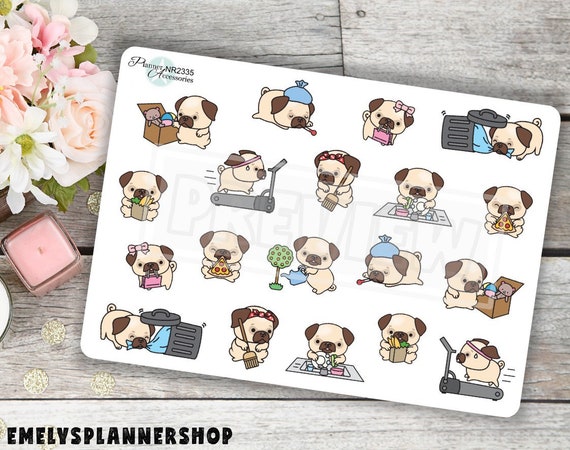 from Etsy Shop for EmelysPlannerShop https://www.etsy.com/listing/674504730/kawaii-puppy-pug-planner-stickers-kawaii?ref=rss