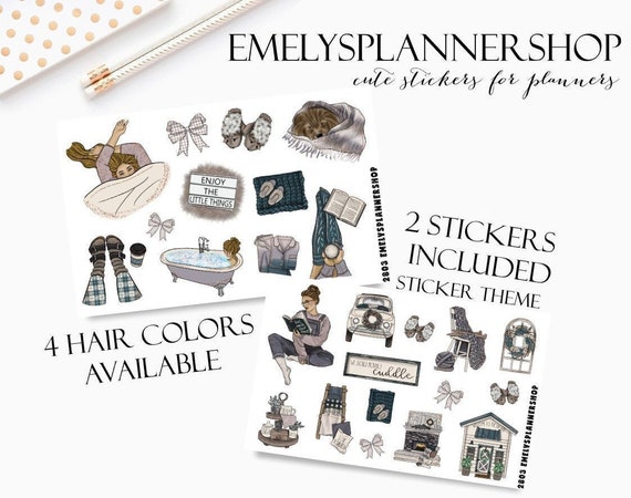 Winter Sticker, Planner Sticker Set, Cozy Girl, Seasonal Cold Snow, Decorative Stickers, Bujo Sticker for your Bullet Journal 2803 by EmelysPlannerShop