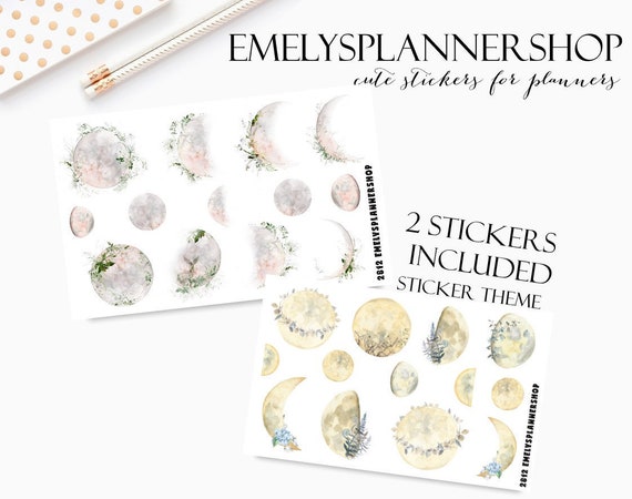 Moon Phases, Planner Sticker Set, Celestial Sticker, Moonlight Nature, Soft Watercolor, Bujo Sticker, Bullet Journal Kit 2812 by EmelysPlannerShop