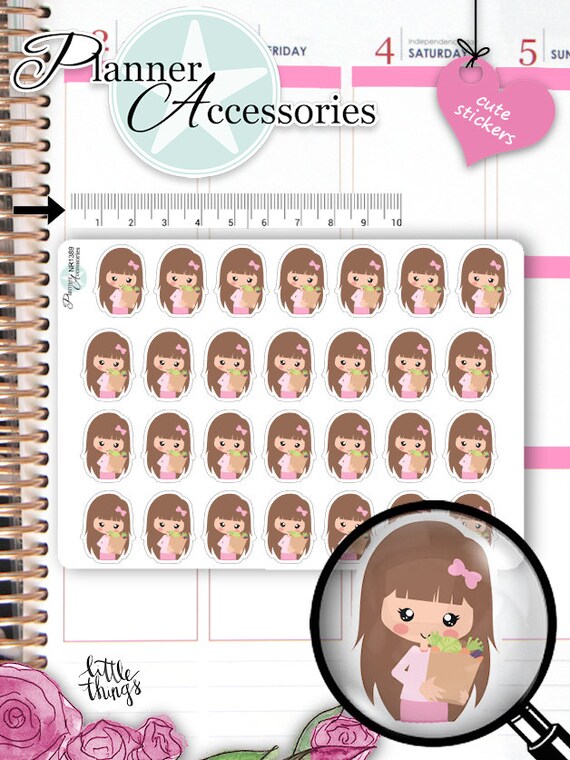 Girl Shopping Planner Stickers - Kawaii Stationary - Hobonichi Sticker - Bujo Sticker - Character Sticker for your Bullet Journal 1389 by EmelysPlannerShop