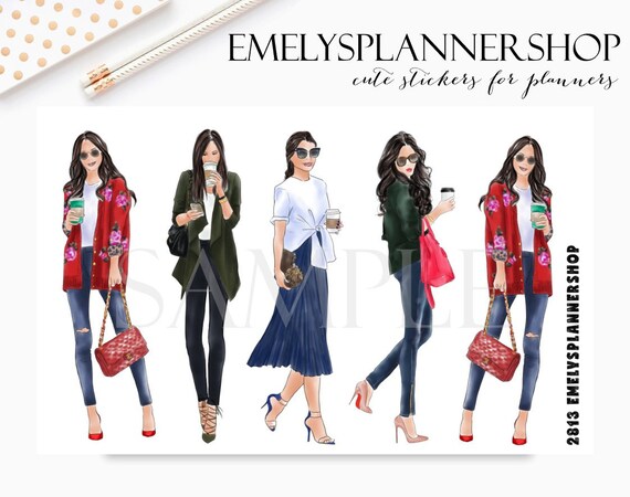 Fashion Girls Set 7, Light Skin, Planner Sticker Set, Lifestyle Coffee, Women Stickers, Bujo Sticker, Bullet Journal Kit 2813 by EmelysPlannerShop