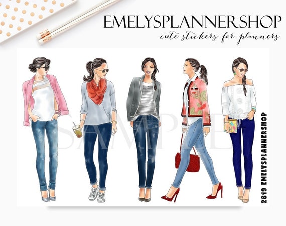 Fashion Girls Set 4, Light Skin, Planner Sticker Set, Lifestyle Sticker, Women Stickers, Bujo Sticker, Bullet Journal Kit 2819 by EmelysPlannerShop
