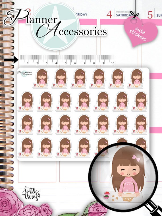 Decorate with this Cute Emely Girl Baking Planner Stickers your Live Planner, Erin Condren, Happy Planner, Filofax or Kikki K. with our unique designed functional Stickers. Cute Planner Accessories that will transform your daily planner from ordinary to extraordinary! These kawaii stickers are a perfect way to put a personal twist to your professional planner. Stay organized while staying colorful and stylish!