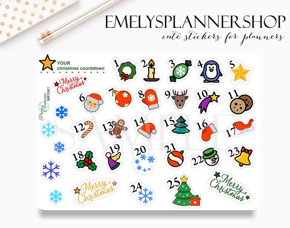 Christmas Countdown Stickers for your Erin Condren, Happy Planner, Filofax or Kikki K. with our uniquely designed sticker products.