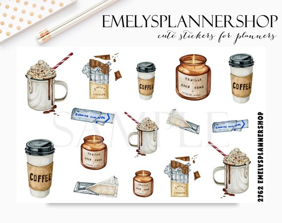Cozy Planner Stickers - Hot Coffee - Chocolate and Candles - Fall Autumn - Decorative Stickers - Bujo Sticker for your Bullet Journal 2762 by EmelysPlannerShop