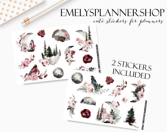 Mystery Mountains, Forest and Moon, Landscape Scenes, Forest Wood, Watercolor Stickers, Boho Stickers, Bujo Sticker, Bullet Journal Kit 2868 by EmelysPlannerShop