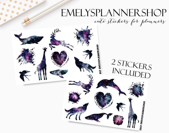 Galaxy Animals, Space Silhouettes, Celestial Planets, Planner Sticker Set, Watercolor Stickers, Decorative Stickers, Bujo Sticker 2867 by EmelysPlannerShop