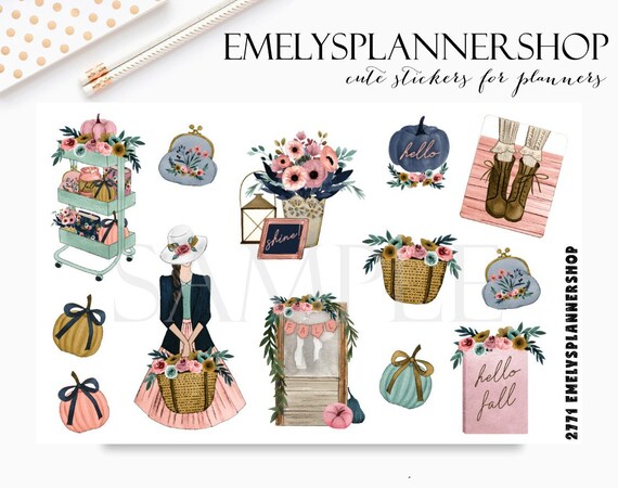 Hello Autumn Girl - Cozy Fall - Planner Stickers - Decorative Stickers - Bujo Sticker for your Bullet Journal 2771 by EmelysPlannerShop