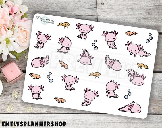 Decorate with this Cute Kawaii Axolotl Planner Stickers your Live Planner, Erin Condren, Happy Planner, Filofax or Kikki K. with our unique designed functional Stickers.