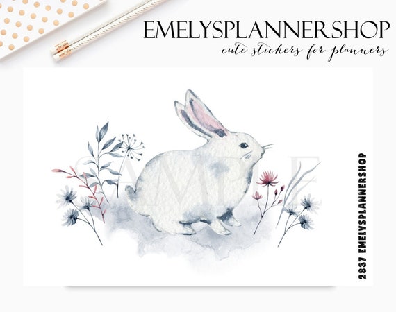 Winter Rabbit, Scene with Snow, Arctic Bunny, Watercolor Stickers, Planner Stickers, Bujo Sticker, Bullet Journal Kit 2836 by EmelysPlannerShop