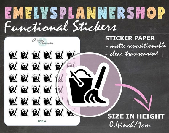 Clear Mop Stickers Household Stickers Cleaning Stickers Planner Stickers Erin Condren Functional Stickers Daily Chore Stickers NR810 by EmelysPlannerShop