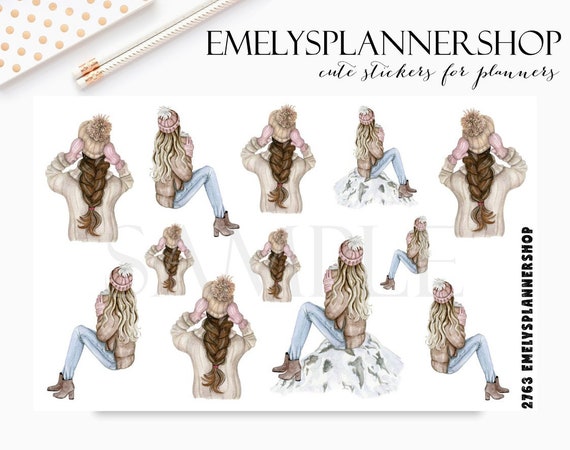 Hand painted watercolor planner stickers with a great selection of Winter Girls.