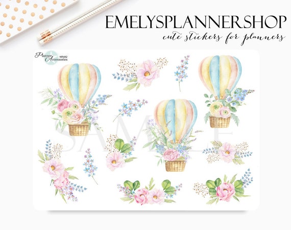 Air Ballon Stickers, Spring Stickers, Flower Stickers, Watercolor Painting - Bujo Sticker - Decorative Stickers for Bullet Journal 482 by EmelysPlannerShop