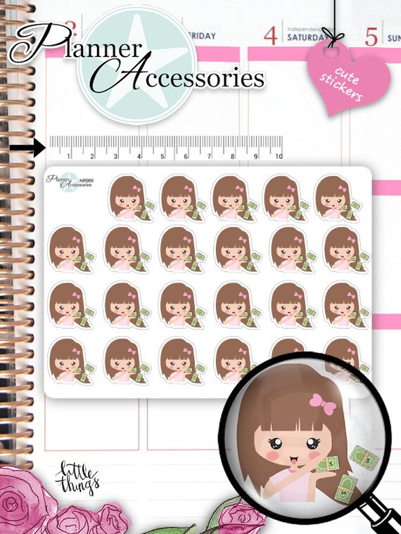Girl Financial Planner Stickers - Kawaii Stationary - Hobonichi Sticker - Bujo Sticker - Character Sticker for your Bullet Journal 966 by EmelysPlannerShop