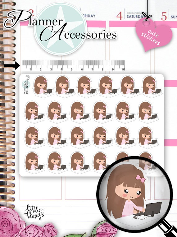 Decorate with this Cute Emely Girl Computer Planner Stickers your Live Planner, Erin Condren, Happy Planner, Filofax or Kikki K. with our unique designed functional Stickers. Cute Planner Accessories that will transform your daily planner from ordinary to extraordinary! These kawaii stickers are a perfect way to put a personal twist to your professional planner. Stay organized while staying colorful and stylish!