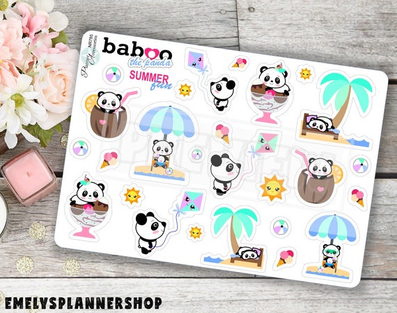 Decorate with this Kawaii Panda Summer Planner Stickers your Live Planner, Erin Condren, Happy Planner, Filofax or Kikki K.