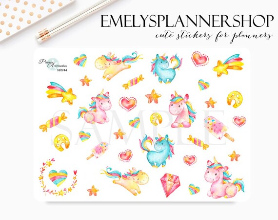 Unicorn Planner Stickers, Watercolor Painting - Bujo Sticker - Decorative Stickers for Bullet Journal 744 by EmelysPlannerShop