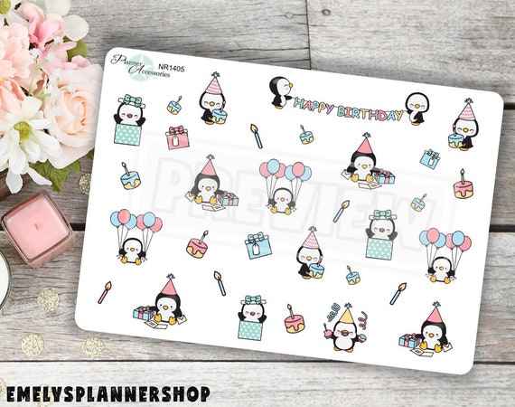 Birthday Penguin Planner Stickers - Kawaii Stationary - Hobonichi Sticker - Bujo Sticker - Character Sticker for your Bullet Journal 1405 by EmelysPlannerShop