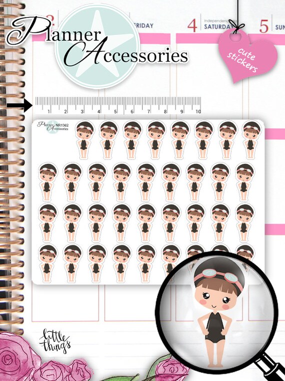 Decorate with this Cute Emely Girl Swimmer Planner Stickers your Live Planner, Erin Condren, Happy Planner, Filofax or Kikki K. with our unique designed functional Stickers. Cute Planner Accessories that will transform your daily planner from ordinary to extraordinary! These kawaii stickers are a perfect way to put a personal twist to your professional planner. Stay organized while staying colorful and stylish!