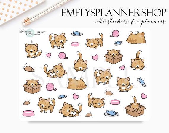 Kawaii Cat Stickers - Kawaii Stationary - Hobonichi Sticker - Bujo Sticker - Character Sticker for your Bullet Journal 1407 by EmelysPlannerShop