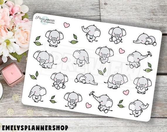 Decorate with this Cute Kawaii Elephant Planner Stickers your Live Planner, Erin Condren, Happy Planner, Filofax or Kikki K. with our unique designed functional Stickers.
