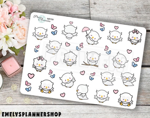 Kawaii Owls Planner Stickers - Kawaii Stationary - Hobonichi Sticker - Bujo Sticker - Character Sticker for your Bullet Journal 709 by EmelysPlannerShop