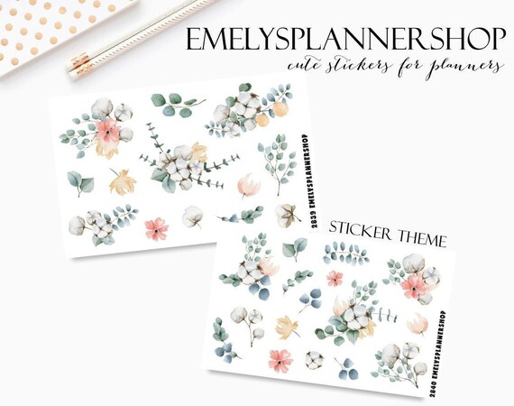 Eucalyptus Flower, Cotton Bowl, Greenery Floral, Planner Sticker, Decorative Sticker, Watercolor Stickers, Bujo Sticker, Bullet Journal 2840 by EmelysPlannerShop