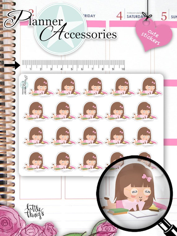 Decorate with this Cute Emely Girl Reading Planner Stickers your Live Planner, Erin Condren, Happy Planner, Filofax or Kikki K. with our unique designed functional Stickers. Cute Planner Accessories that will transform your daily planner from ordinary to extraordinary! These kawaii stickers are a perfect way to put a personal twist to your professional planner. Stay organized while staying colorful and stylish!
