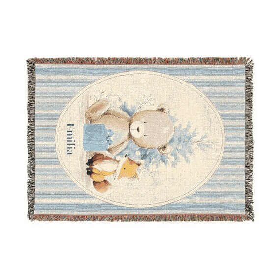 Personalized with your baby’s name, this blanket becomes a warm and emotional gift for newborns, woodland-themed nurseries, and winter babies.