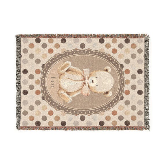 Copy of Copy of Copy of Teddy Bear Baby Blanket Blush Dot Personalized Name Blanket Woven Neutral Nursery Gift by BoutiqueLumiereCo