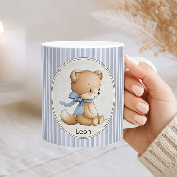 Personalized Fox Baby Mug • Custom Name Cup • Blue Bow Fox Kids Mug • Baby Shower & Newborn Gift by BoutiqueLumiereCo