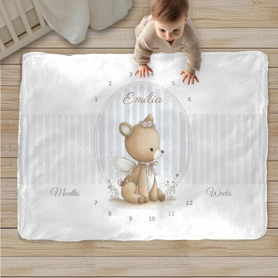 Personalized Deer Milestone Blanket • Monthly & Weekly Baby Photo Prop • Woodland Name Blanket • Newborn Gift • Nursery Decor by BoutiqueLumiereCo